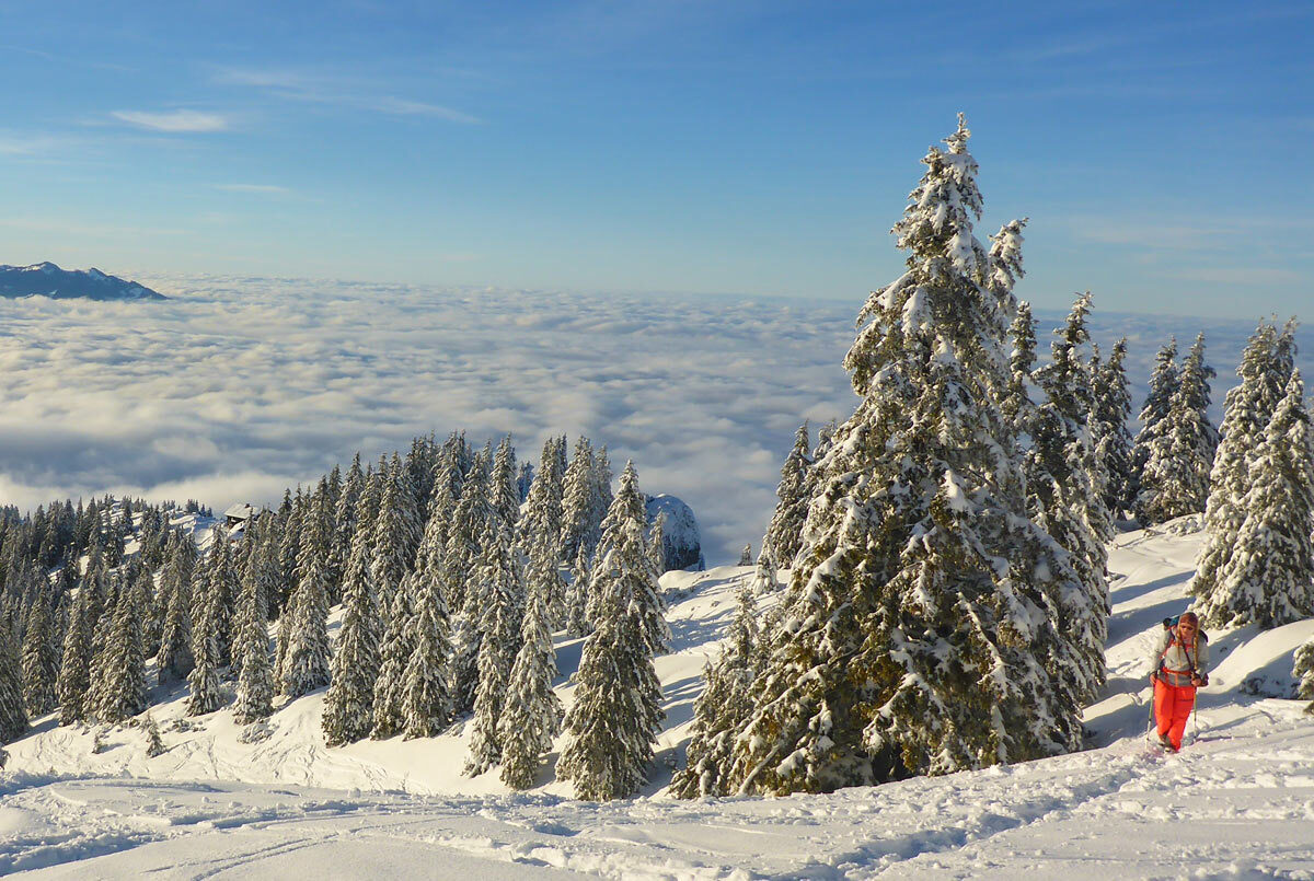 Schneeschuhwandern bietet Naturerlebnisse der stillen Art und grandiose Ausblicke. Für Neulinge gibt es auch geführte Touren zum Ausprobieren, zum Beispiel unter: www.allgaeu-aktiv.com