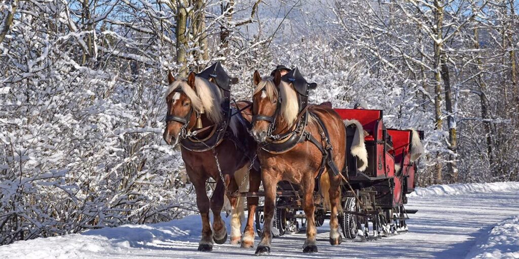 Eine Pferdeschlittenfahrt durch die weiße Winterlandschaft ist ideal für einen romantischen Ausflug zu zweit oder für die ganze Familie.