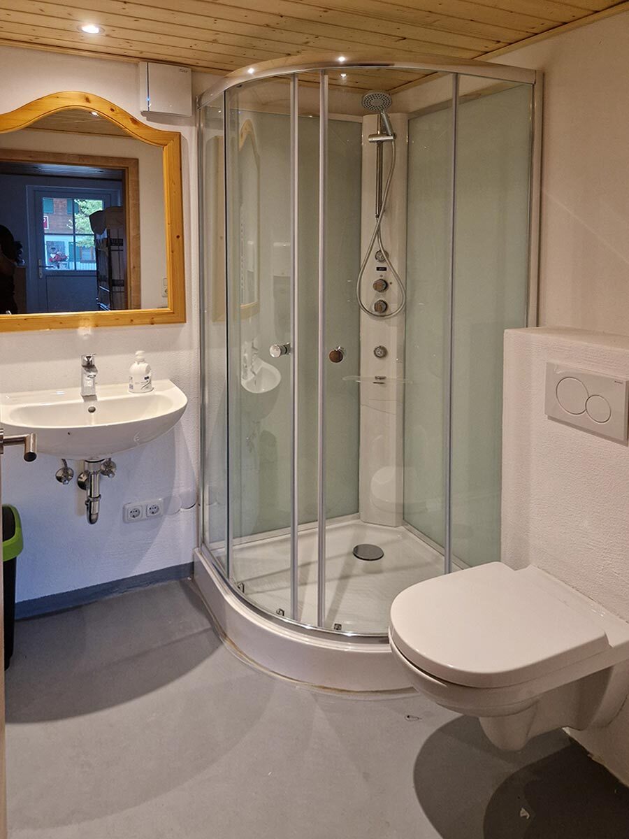 - Helles Bad mit Dusche, WC im Hauptgebäude
