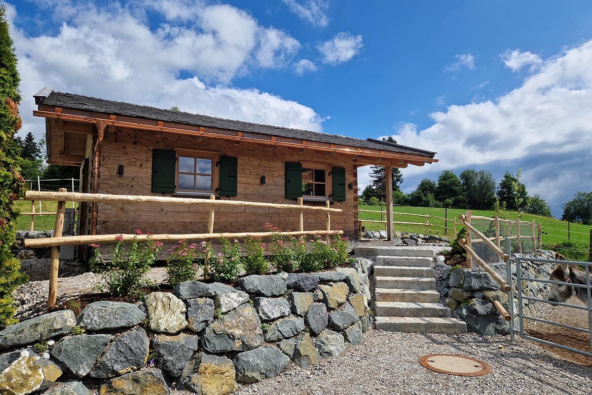 Beginne den Tag mit einem Frühstück auf der Terrasse, begleitet von unseren Pferden und Eseln. Eine weitere Terrasse in Süd–West Ausrichtung lädt zum Verweilen ein.